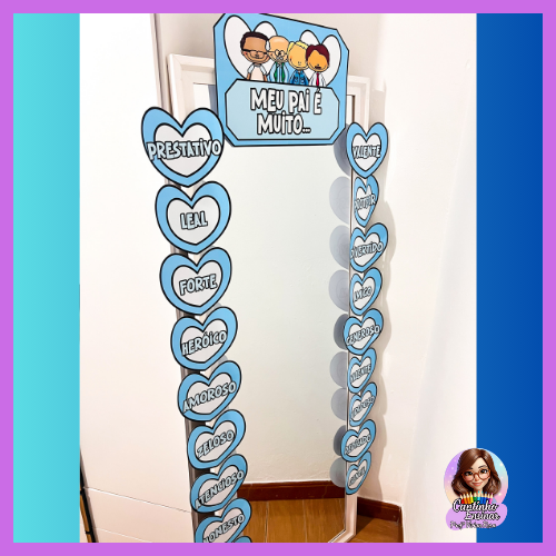 Colocar um espelho de afirmações na escola para o Dia dos Pais é uma forma afetuosa de homenagear e fortalecer a confiança e o sentimento de valorização dos pais.