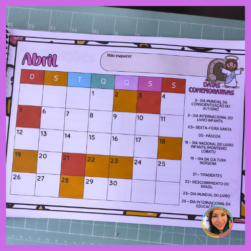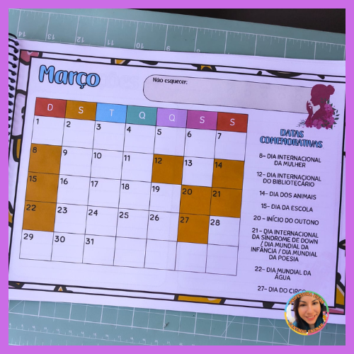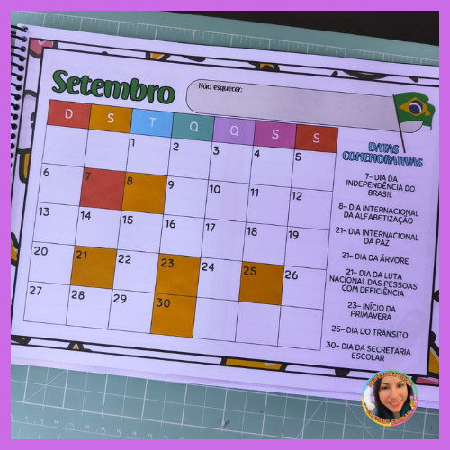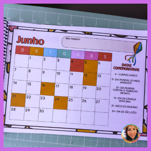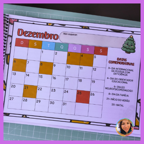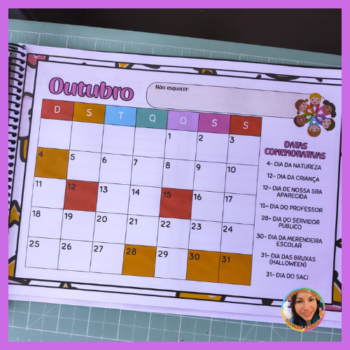 Ele traz todos os meses do ano, com as principais datas comemorativas trabalhadas no ambiente escolar, além de um espaço especial para anotações, onde você pode registrar ideias, projetos, lembrancinhas e atividades.